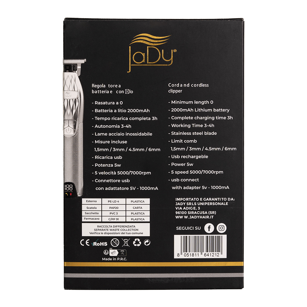 JADY LUXURY CLIPPER SILVER ZERO TOSATRICE RASOIO ELETTRICO TAGLIO 0 USO PROFESSIONALE